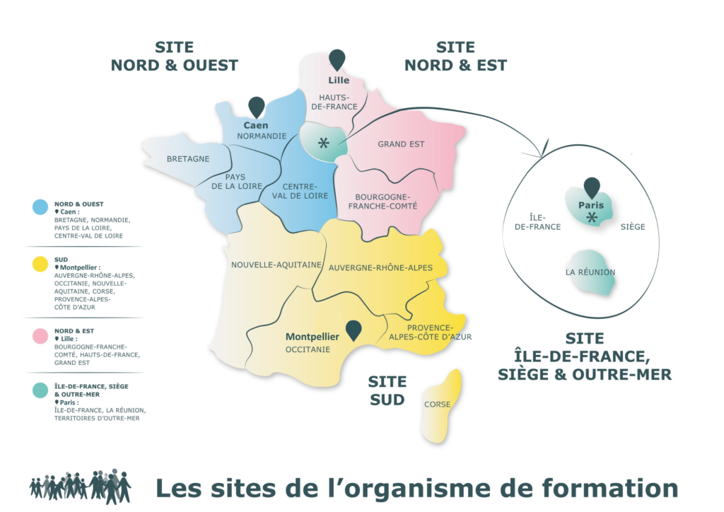 L’organisme de formation d’Association Addictions est organisé en 4 sites inter-régionaux, ce qui lui permet d’intervenir dans toute la France.