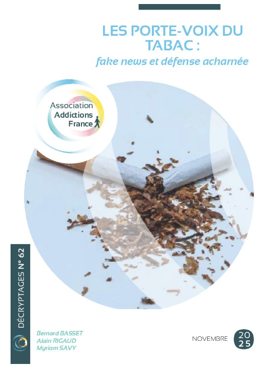 Les données épidémiologiques récentes attestent du succès de la lutte contre le tabac en France, et tous les acteurs de la santé publique peuvent s’en féliciter, tellement les dommages sanitaires et sociaux liés au tabac sont considérables. Mais cette évolution positive et spectaculaire, qui se traduit par 4 millions de fumeurs quotidiens en moins en 10 ans, rencontre la résistance des acteurs dont le commerce repose en grande partie sur la consommation de tabac (buralistes, cafetiers-restaurateurs…) qui s’abreuvent à la communication de l’Industrie, en premier lieu Philip Morris International, jusqu’à la diffuser telle quelle dans les médias. Ces éléments de langage bien rôdés reposent à la fois sur des fake news, des distorsions de la réalité et une défense bien comprise de leurs intérêts commerciaux. Leur défense acharnée du tabac et de la nicotine les pose en derniers remparts d’une industrie qui, aujourd’hui comme hier, entend perpétuer ses activités sans considération pour les souffrances qu’elle entraine, tout en tenant un discours de façade sur la nécessité de lutter contre le tabagisme.